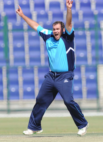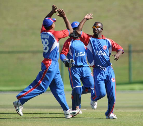 - Scotland fast bowler, Dewald Nel, dismisses USA's Sushil Nadkarni lbw for 1 run.