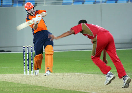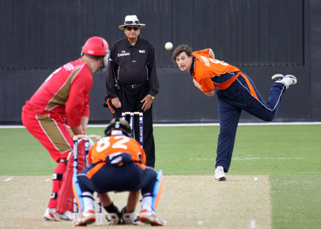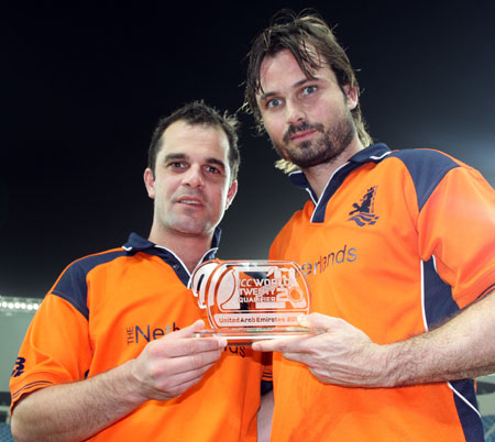 ICC Match referee David Jukes presents MOM Award to Bas Zuiderent