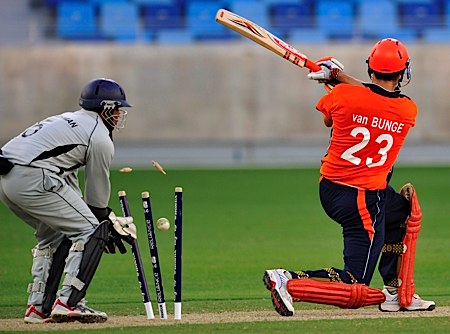 van Bunge's innings of 76 comes to an end