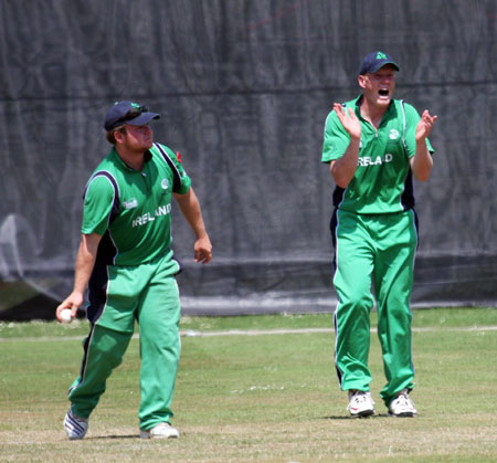 Kevin O'Brien and John Mooney come off after the six wicket win
