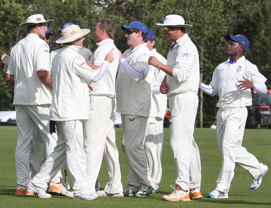 Umpires Richard Smith, Charlie McElwee and Buddhi Pradhan