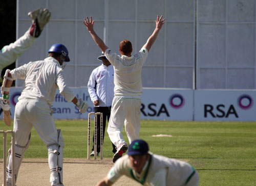 Dockrell can't believe it but his despair soon turned to joy when the umpire gave it out