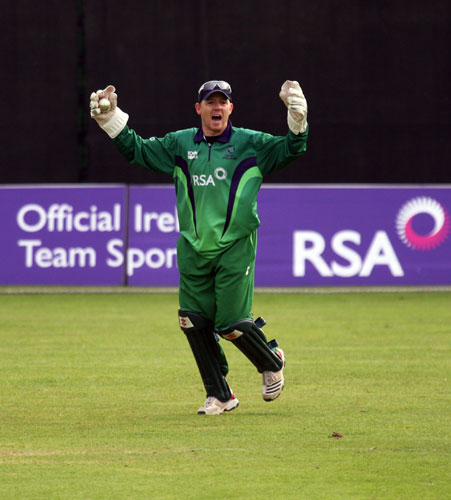 Trent Johnston celebrates the wicket