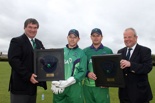 Niall O'Brien and William Porterfield receive their presentation caps