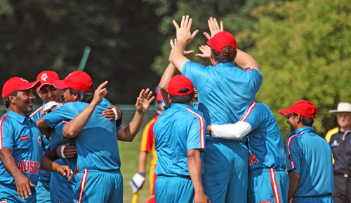 Austria celebrate the wicket