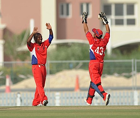 Hong Kong's Nadeem Ahmed is bowled for 3