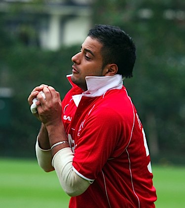 Sultan Ahmed drives one out of the reach of Jacob Larsen