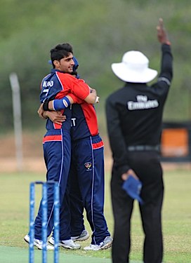 Mohammed Murad celebrates the wicket of Norway's Shahid Mahmood