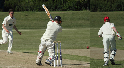Mads Rasmussen hits one of his many fours in his swashbuckling innings