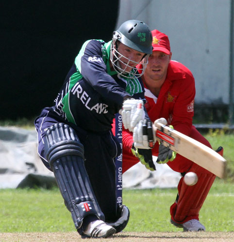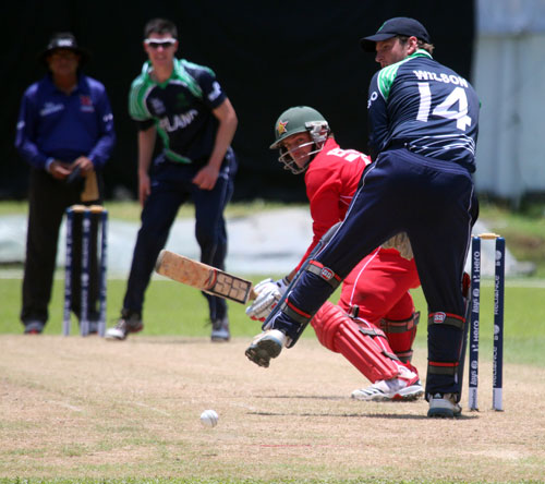 Geogre Dockrell appeals after bowling Graeme Cremer
