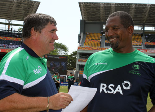 Ireland fan Rangan Arulchevan with George Dockrell and Andrew White
