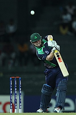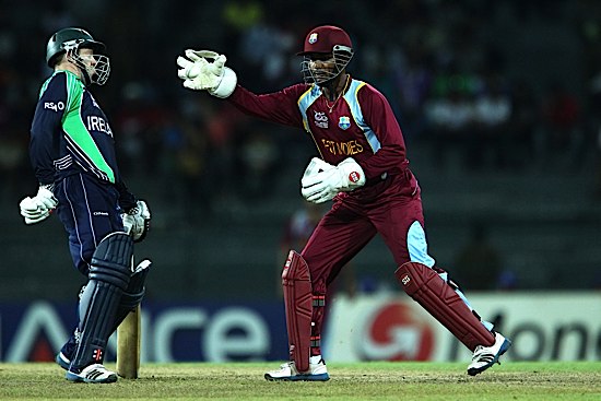 Denesh Ramdin catches the ball before it hits Niall O'Brien