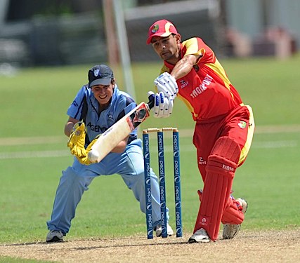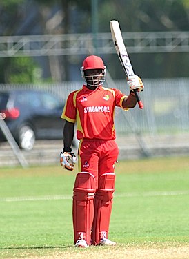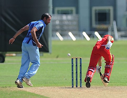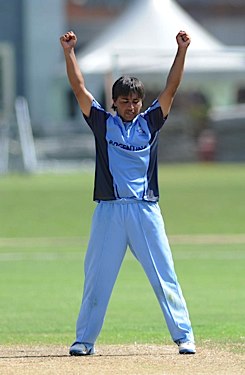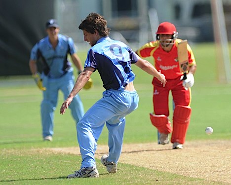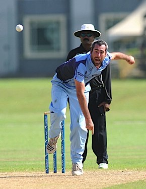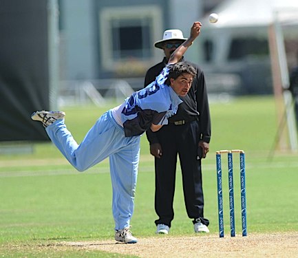 Esteban MacDermott, celebrates taking the wicket of Kumarage