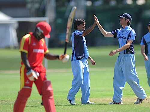 Argentina celebrate the dismissal of Chaminda Kumarage