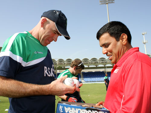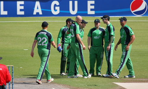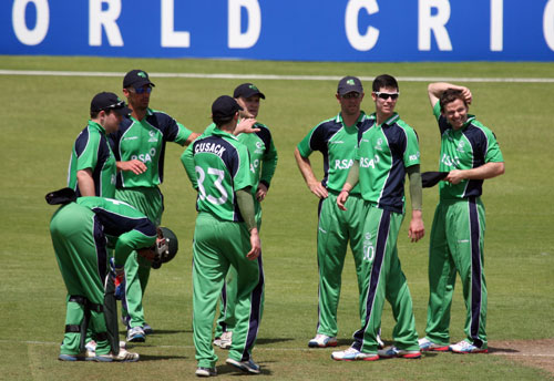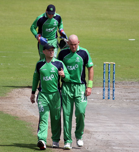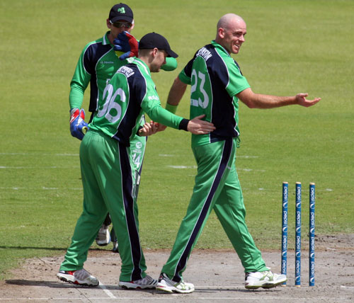 Dockrell and Porterfield congratulate each other on teh dismissal of Nasir