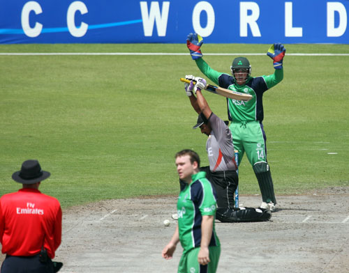 It's a simple catch for NIall O'Brien to dismiss Shadeep Shilva