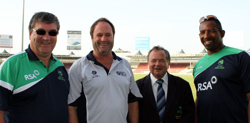 Roy Torrens, Richard Done, Arthur Vincent and Phil Simmons after the match