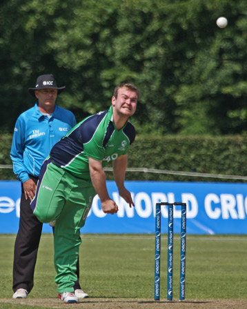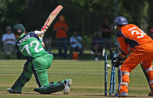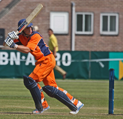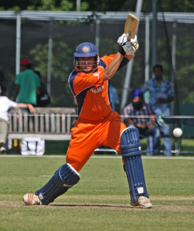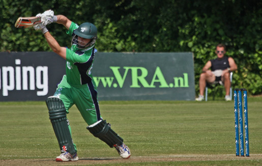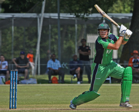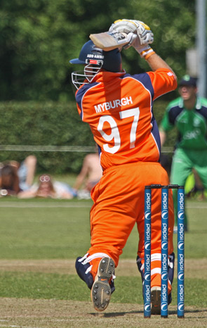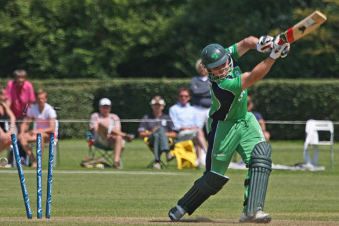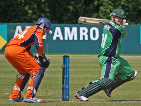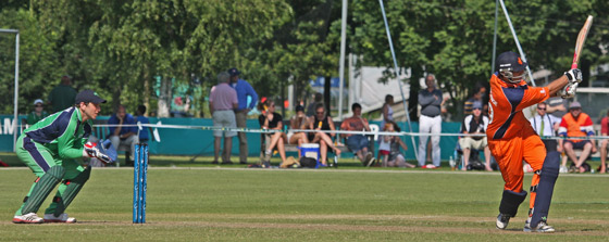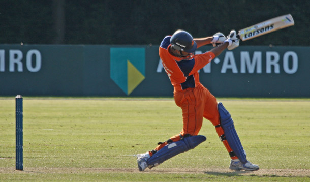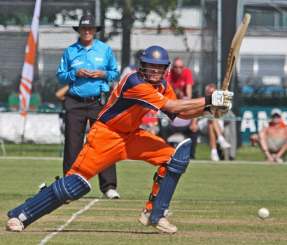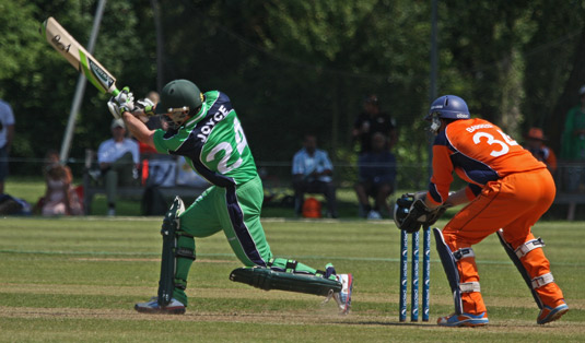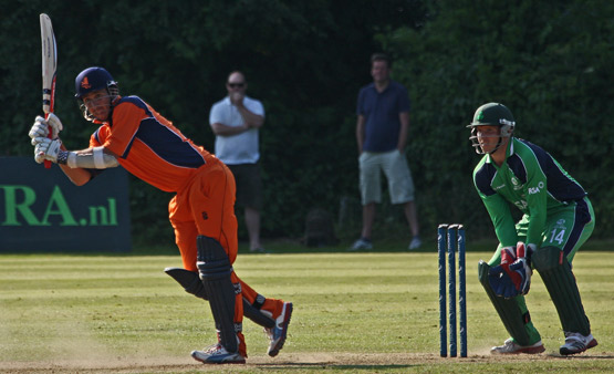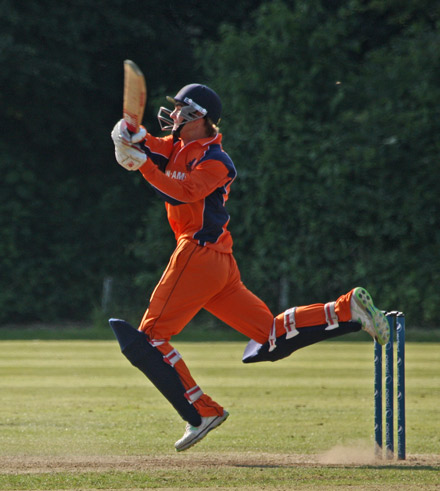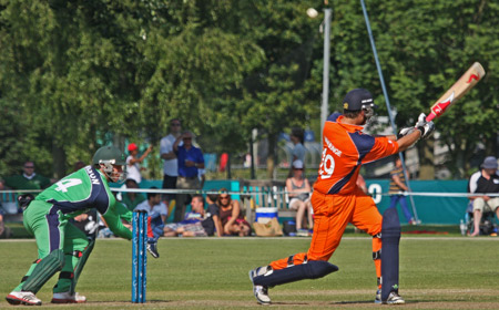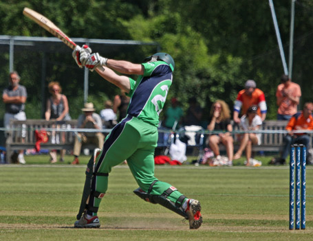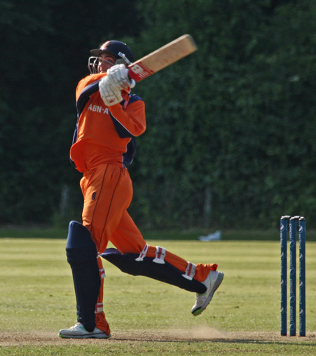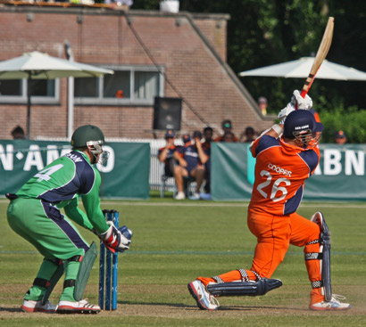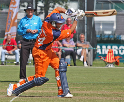 Michael Rippon puts the fourth bouncer of the last over away for four