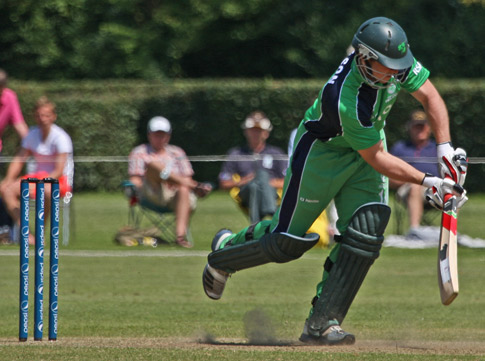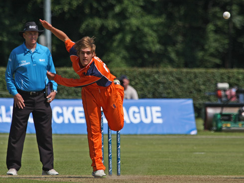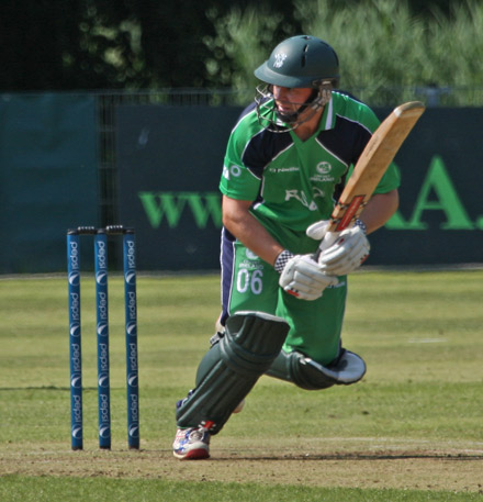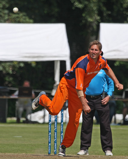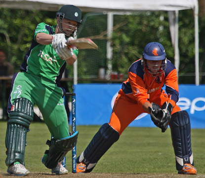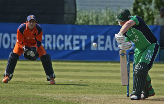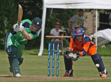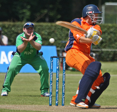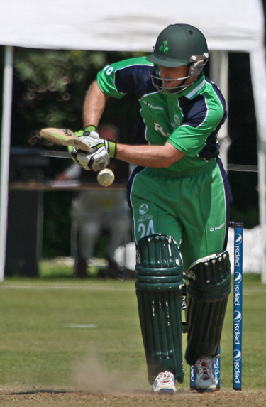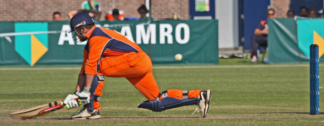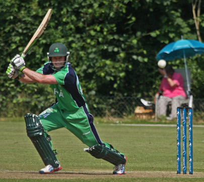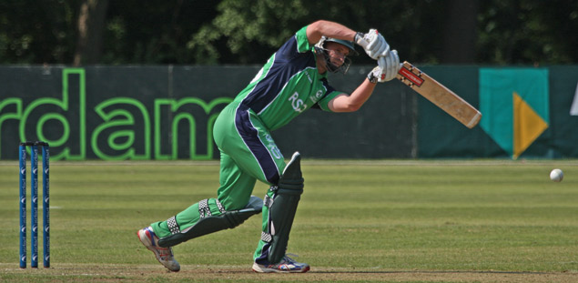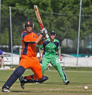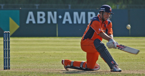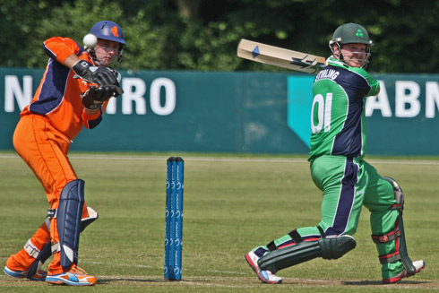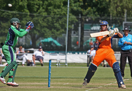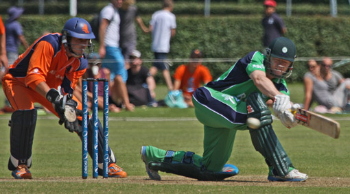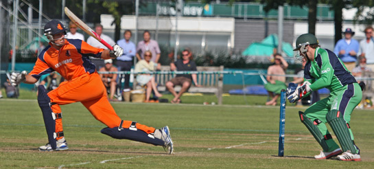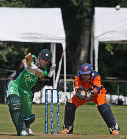 Michael Rippon puts the fourth bouncer of the last over away for four