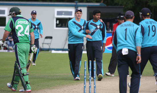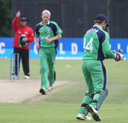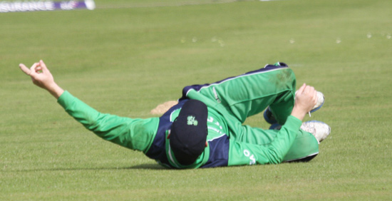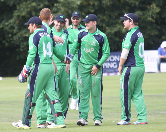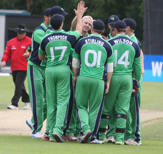 ... Ireland celebrate Gary Wilson's catch