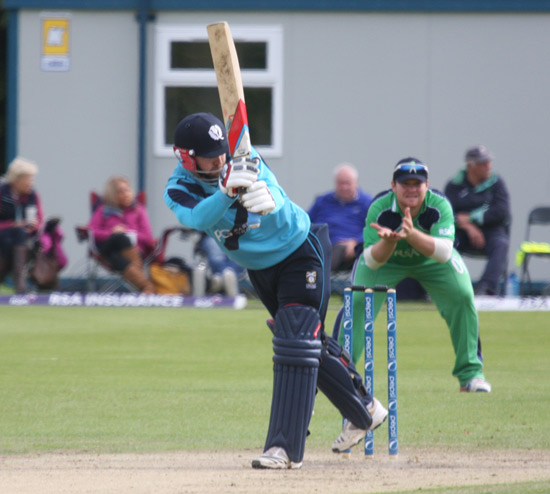 Matt Machan drives through the covers