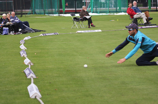 Gary Wilson lofts Haq to the boundary