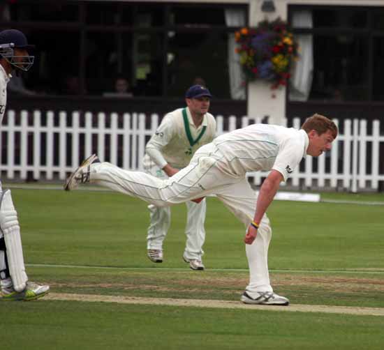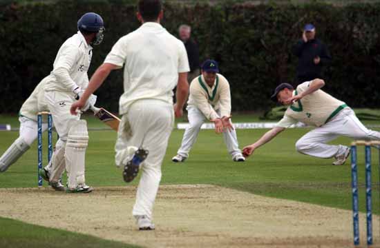 Kevin O'Brien takes a fantastic catch at second slip to dismiss Majid Haq