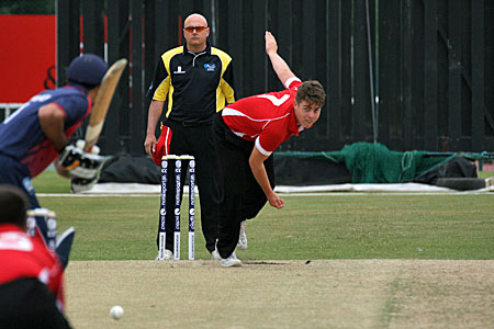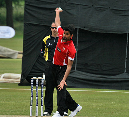 Waheed Aamir opens the bowling for Norway