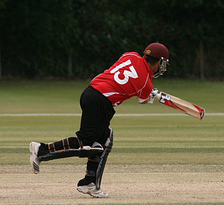 Ansar Iqbal hits the first ball to extra cover...