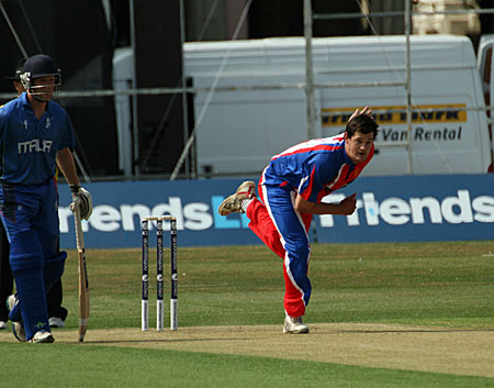 Gayashan Munasinghe bowling from the Cromwell Road end