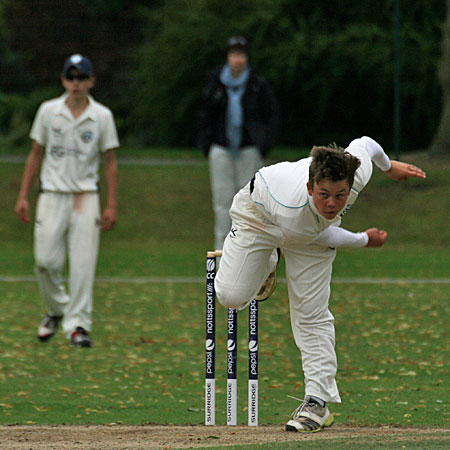 Shujaa Khan and Thomas Dryden appeal for an lbw