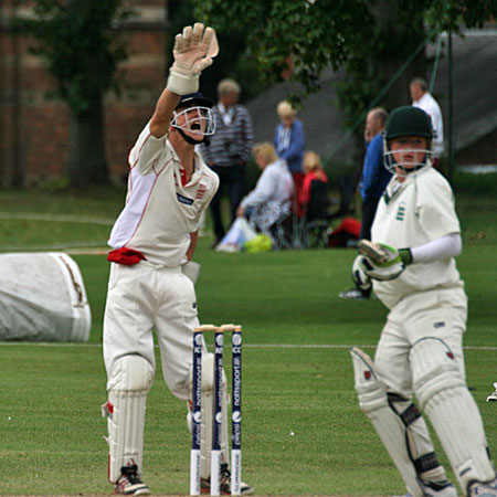 Jack Smart is bowled by William Kaye to end the Guernsey innings