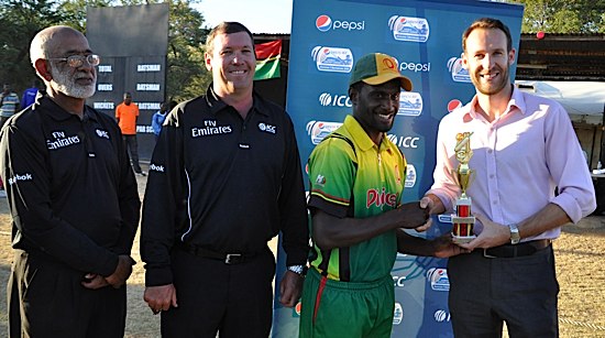 Nalin Nipiko receives his award from Eddie Fitzgibbon of ICC