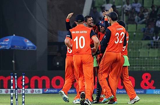 Netherlands celebrate the wicket