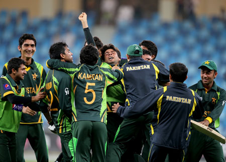 Kamran Ghulam (C) of Pakistan celebrates with teammates