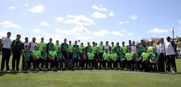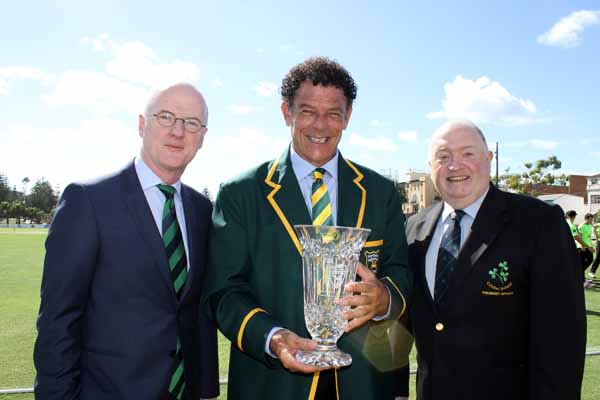 Irish ambassador Noel White, Mike Whitney and Joe Doherty with the trophy