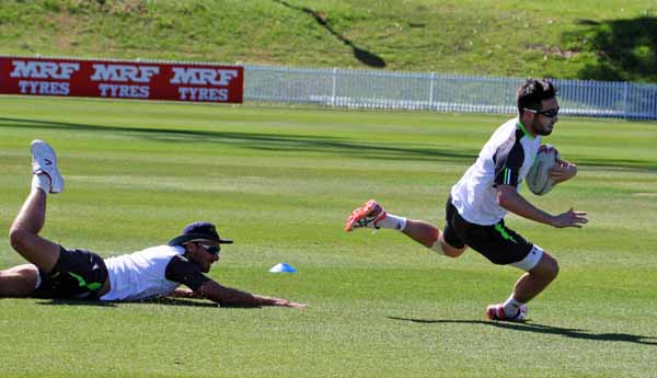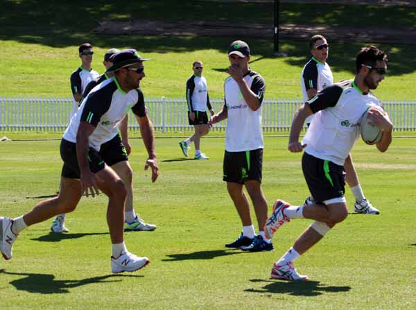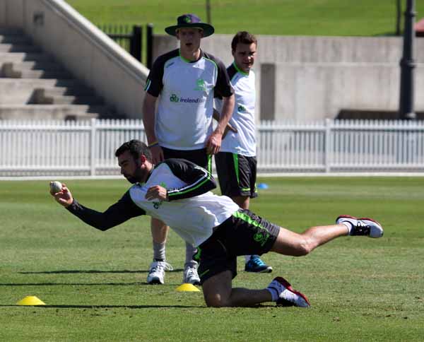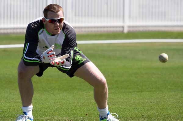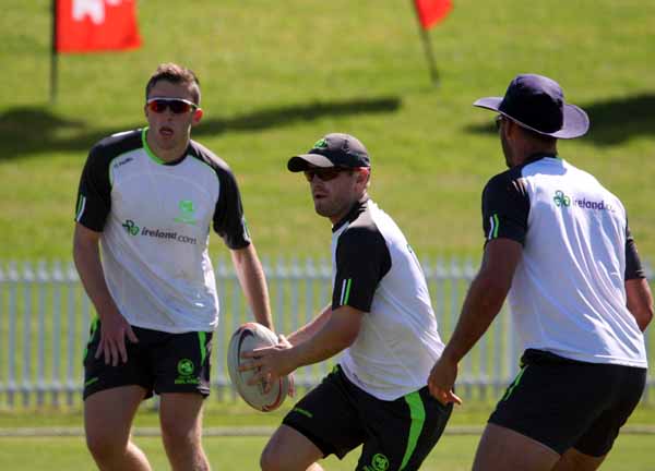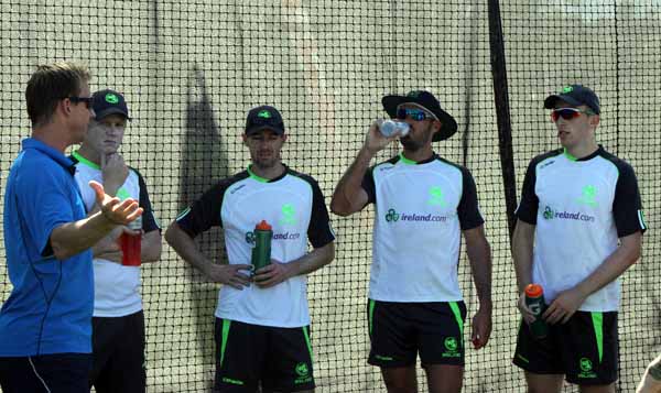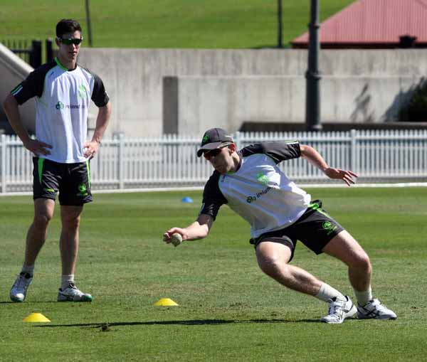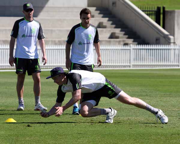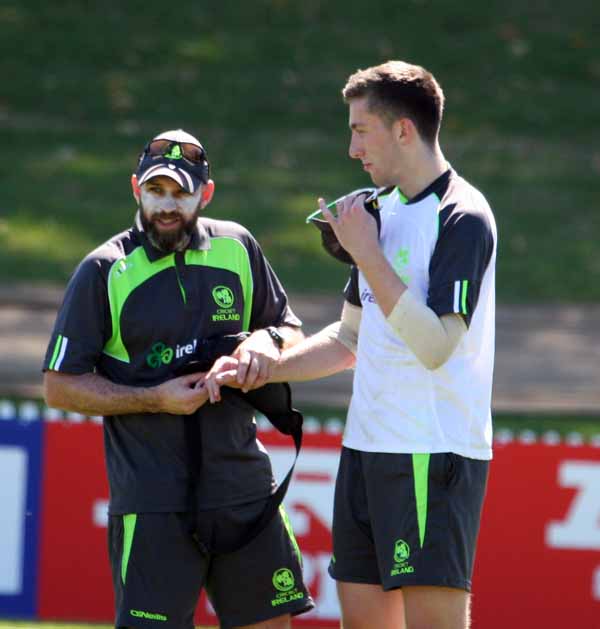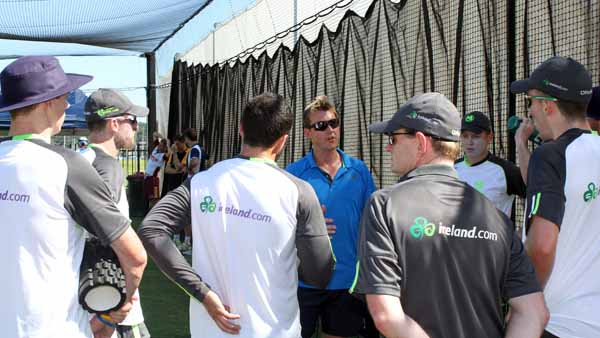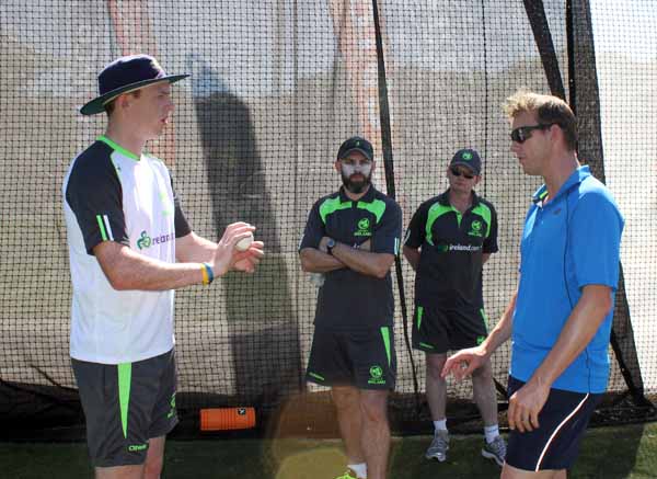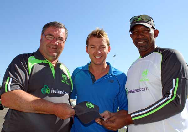 Brett Lee receives cap from Manager Roy Torrens and Coach Phil Simmons