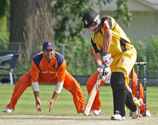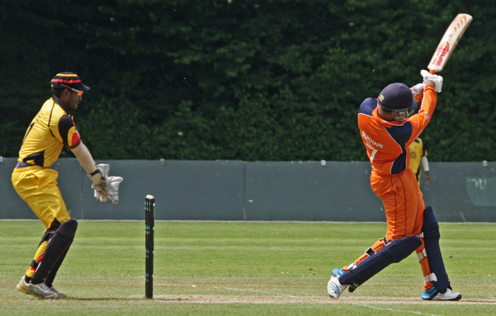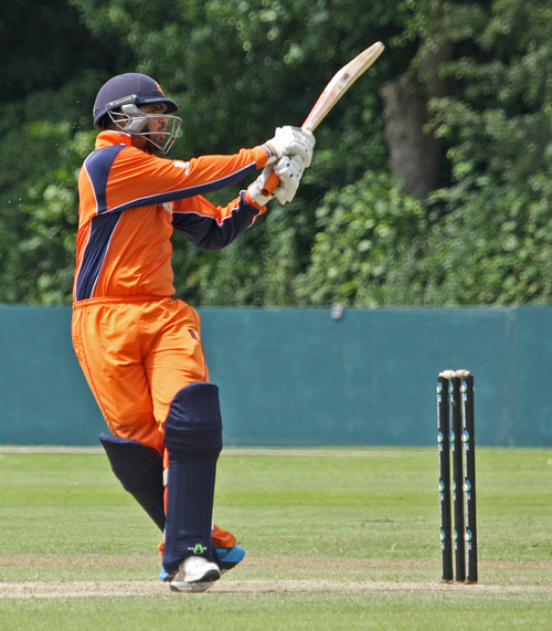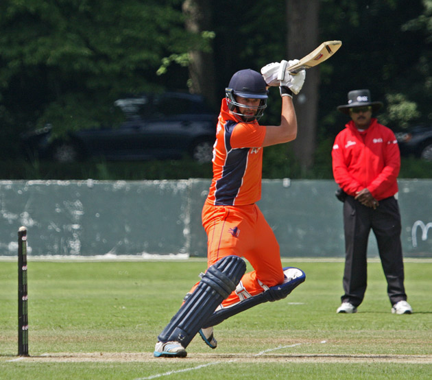 Vala is run out by Pieter Seelaar and the Dutch are on top