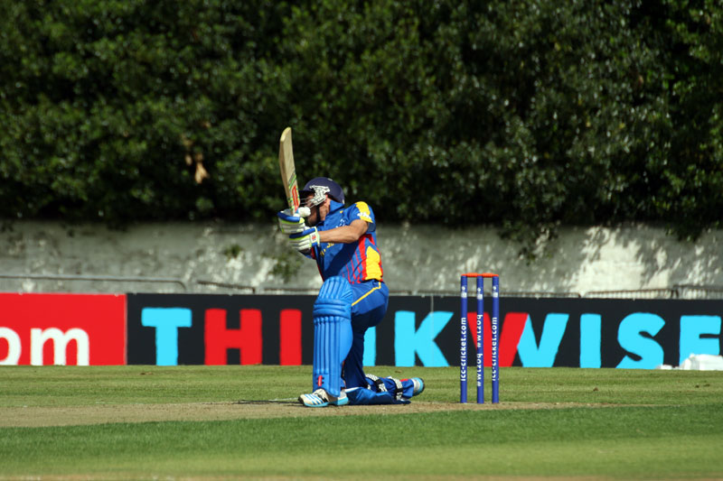 Preston Mommsen congratulates Richie Berrington on his fifty