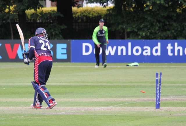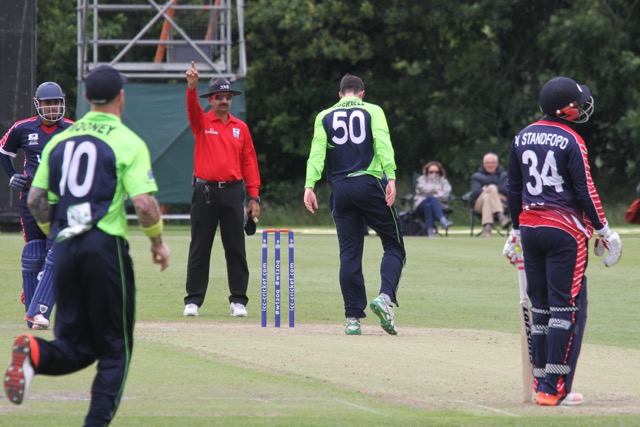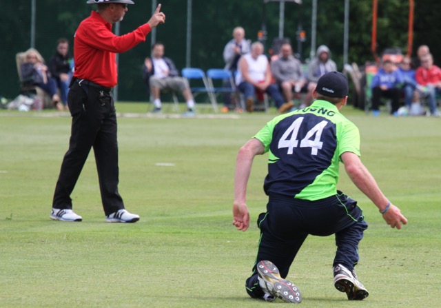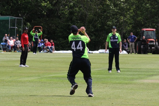Square-leg Umpire confirms the first of Young's 3 catches carried