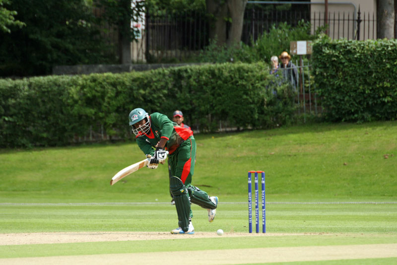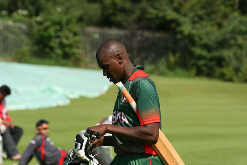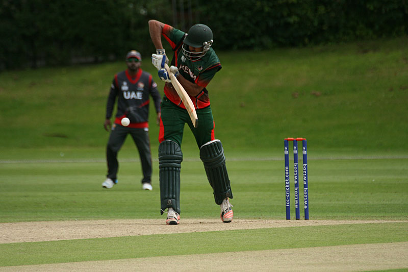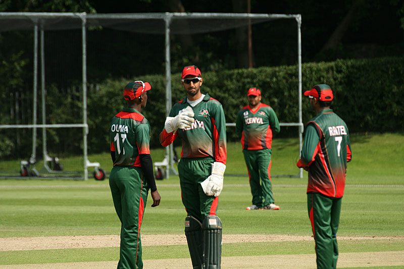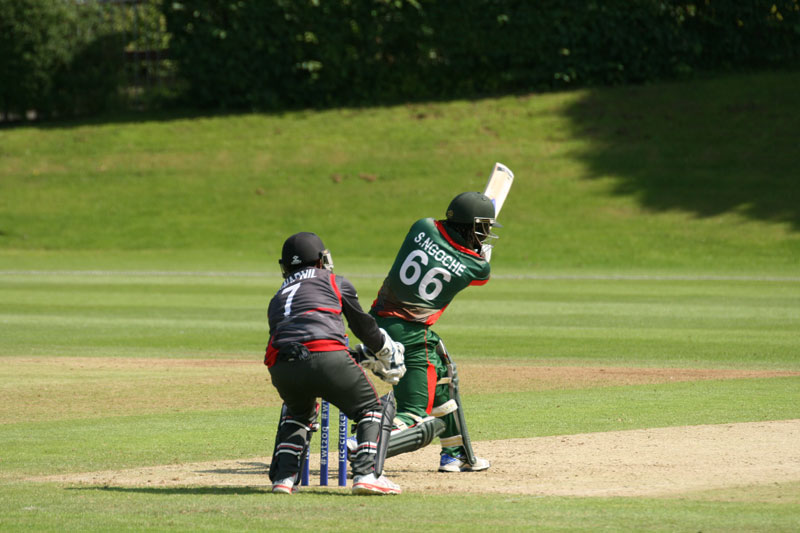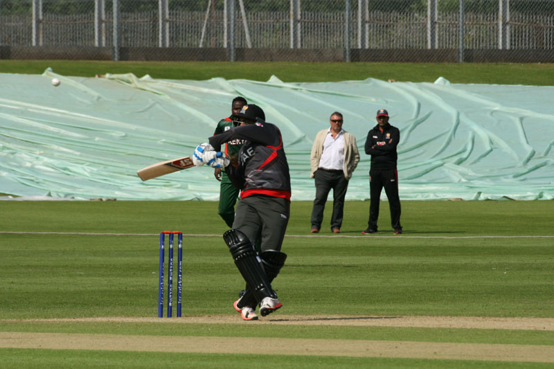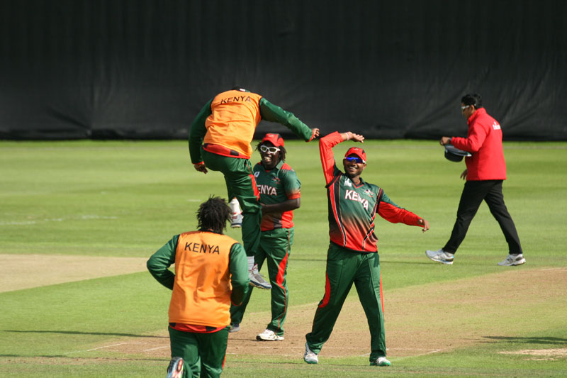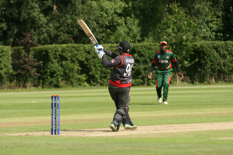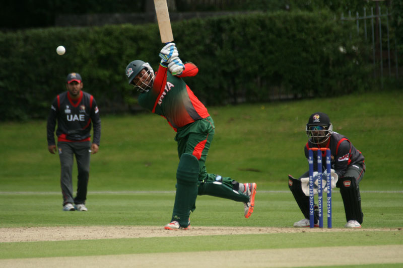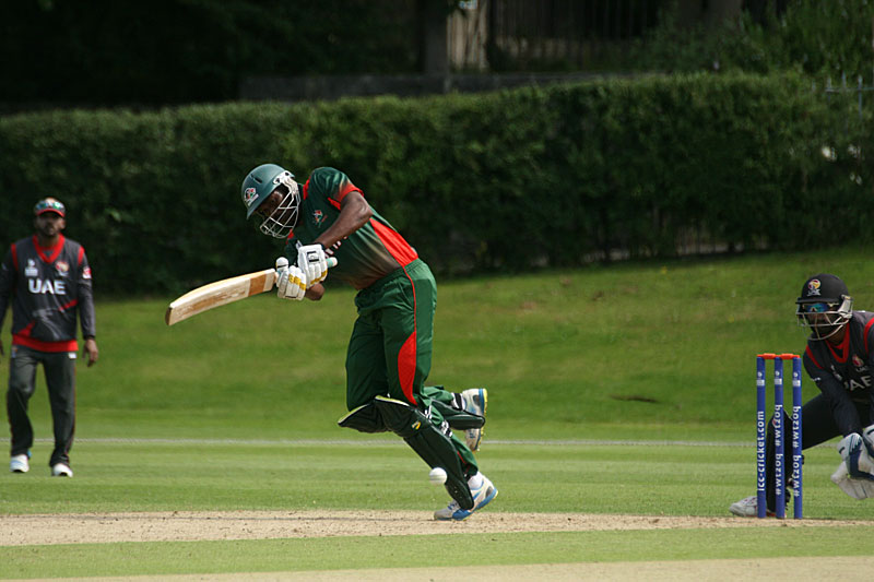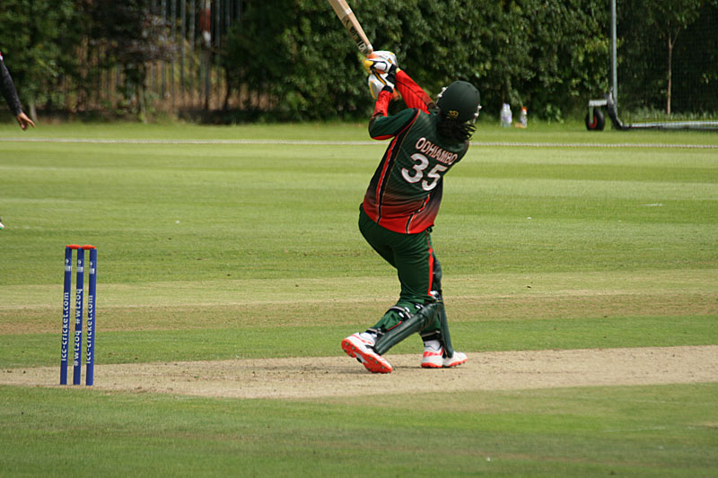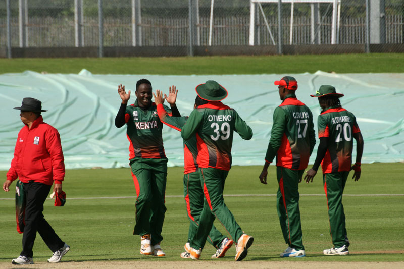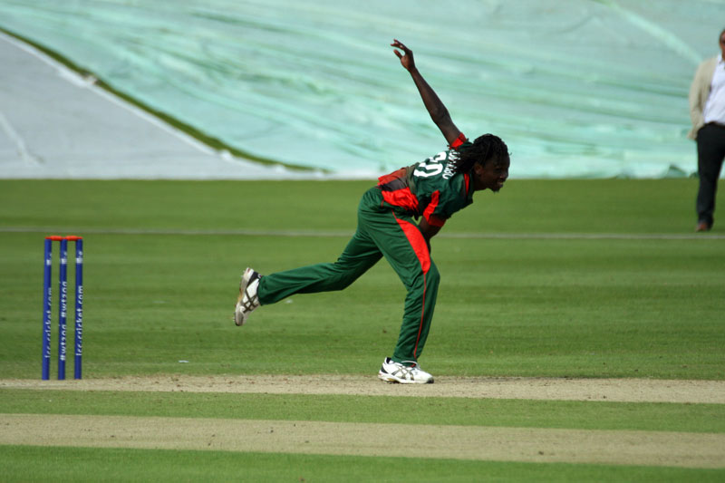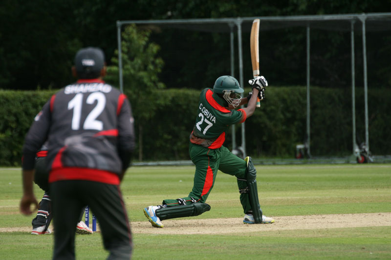 Faizan Asif takes the catch to dismiss Collins Obuya
