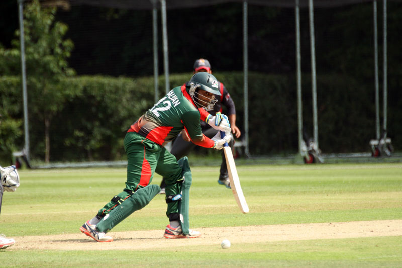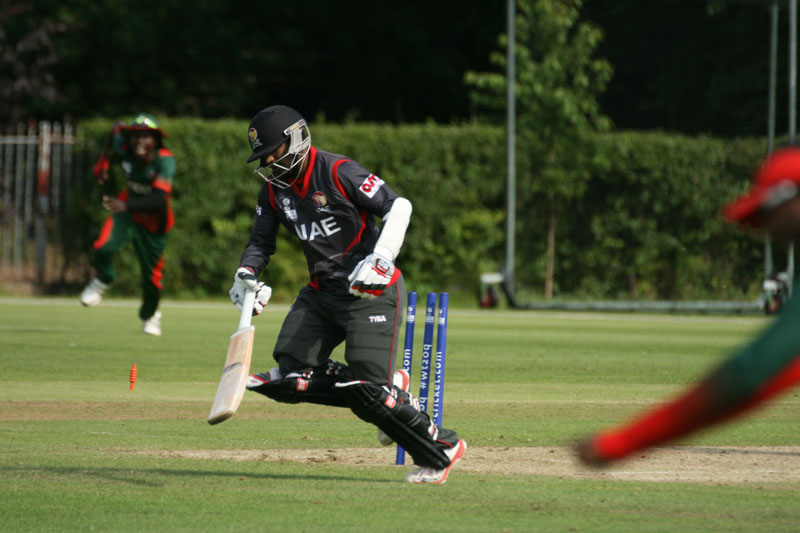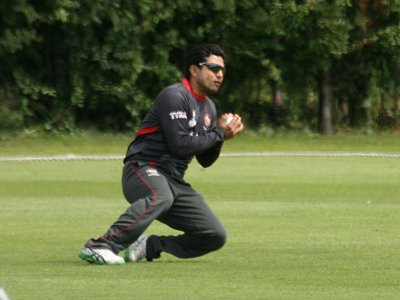 Rakep Patel takes the catch to dismiss Abdul Shakoor
