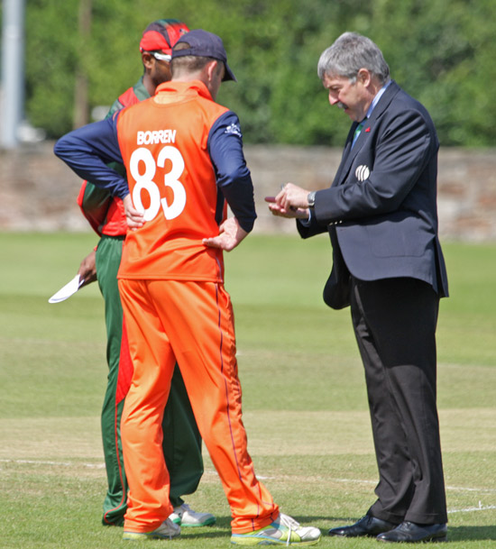 Captains Borren and Patel at the toss with Match Referee Dukes