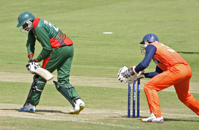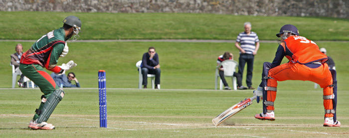 Early success for the Dutch as danger-man Karim is removed for 2 runs only