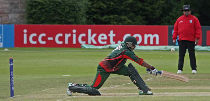 Max O´Dowd plays a non-shot and is stumped off Ngoche