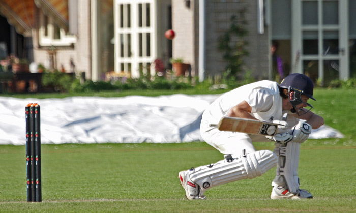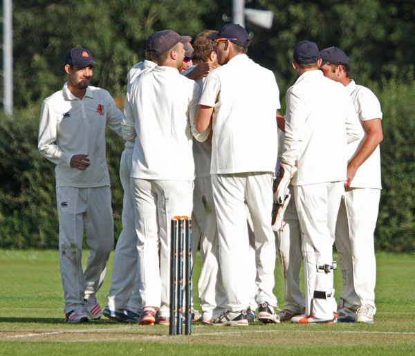 Quirijn Gunning is overjoyed to get Con de Lange lbw