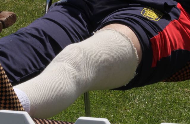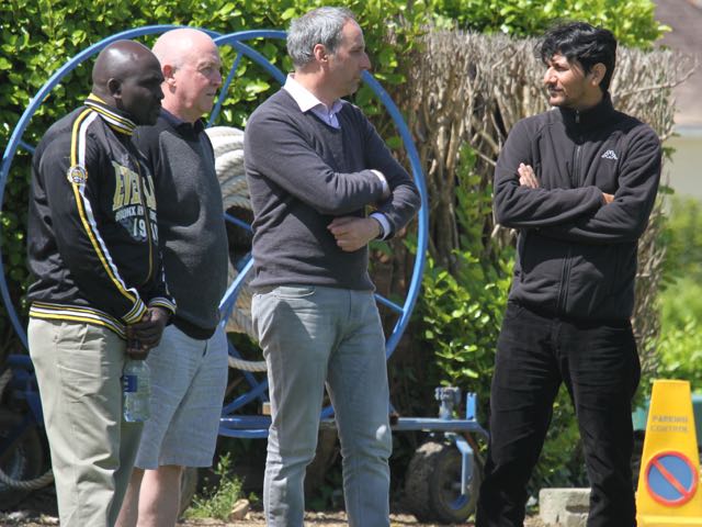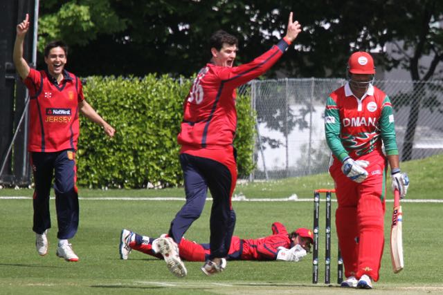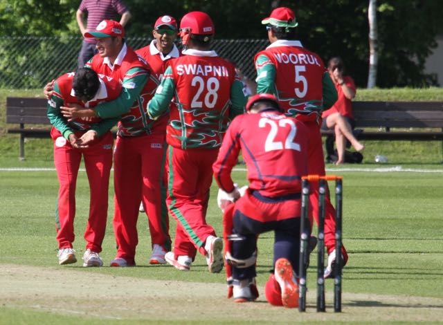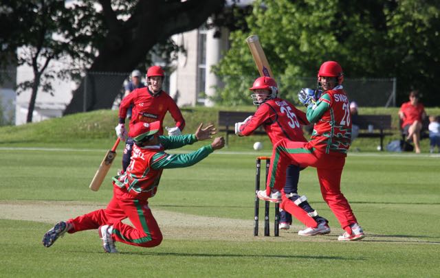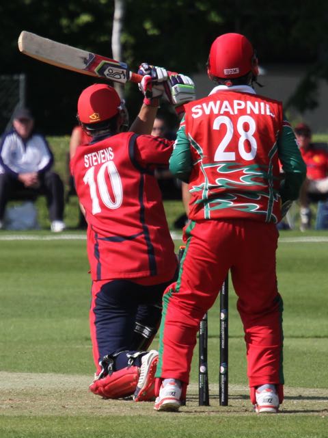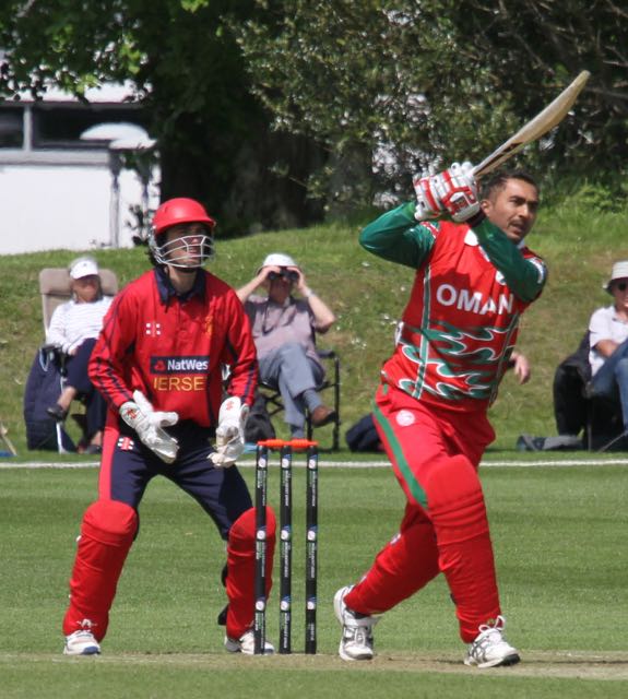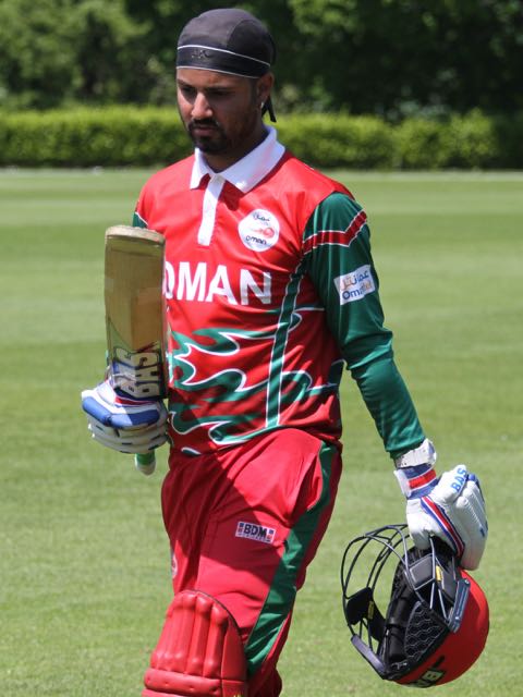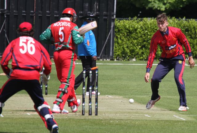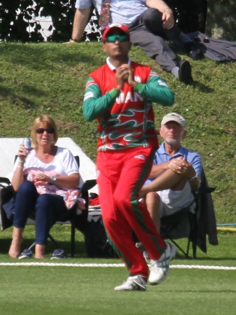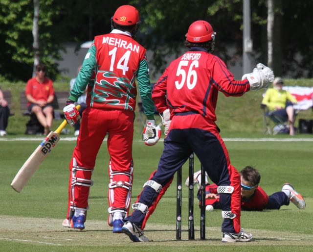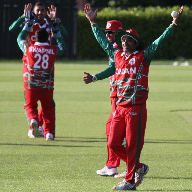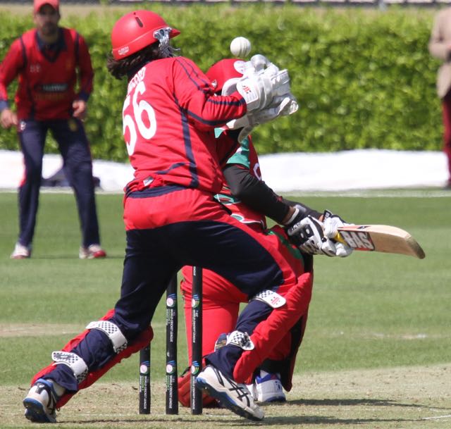 Officials explain to Neil McRae and Peter Gough that Oman have refused to allow a replacement for the post toss injury...