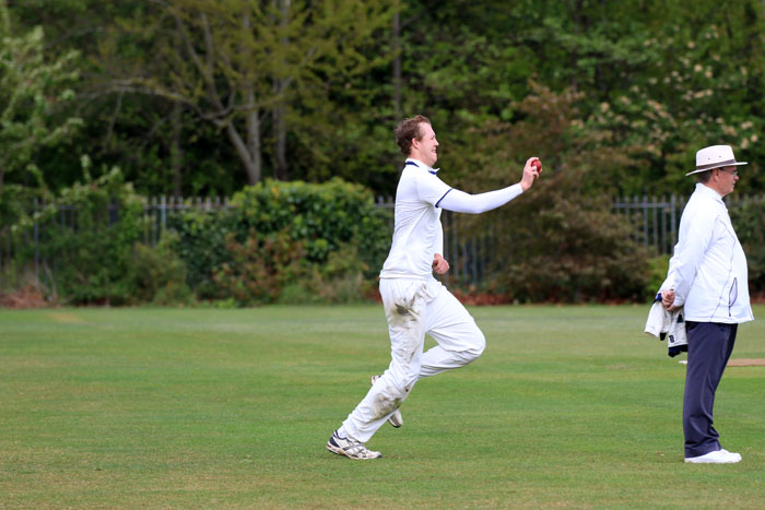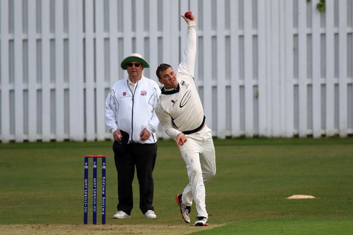 Ryan Brown bowling from the pavilion end