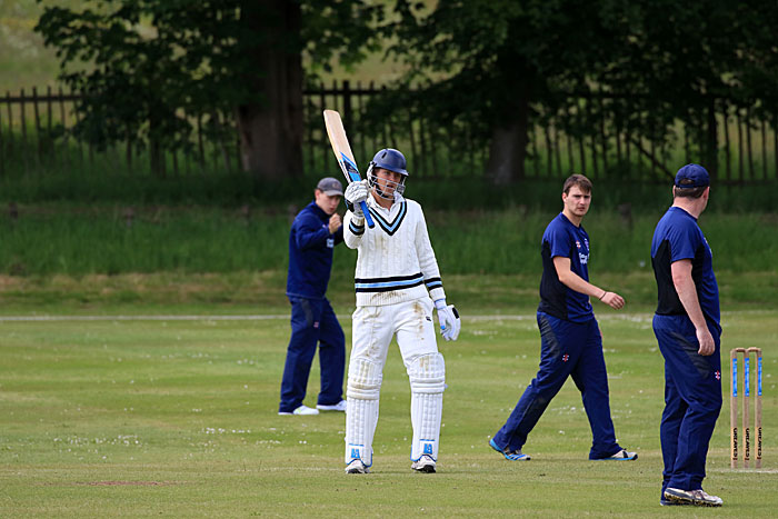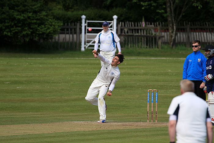 Darren Pryde opens the bowling for Drumpellier from the golf course end