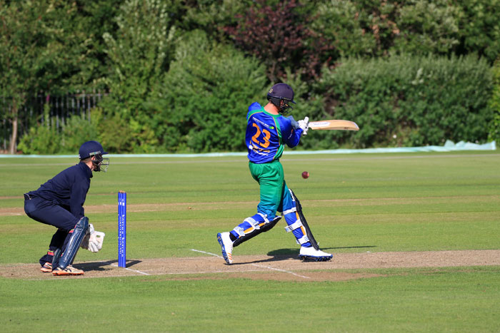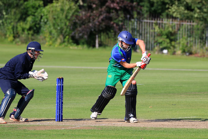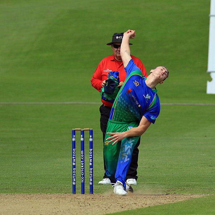 Tom Simpson takes the catch on the boundary to dismiss Patrick Page